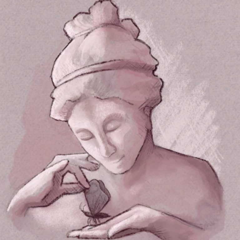 Inspiriert von der Skulptur „Psyche“ Antonio Canovas (1793) entwickelte die freischaffende Künstlerin Gina Bauschert das visuelle Design des Studio Kunst & Psyche.